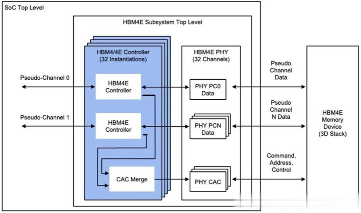 对于搭载 8 颗 HBM4E 器件的 AI 加速器,其内存带宽将超过 32 TB/s,以支撑下一代 AI 工作负载。Rambus HBM4E 控制器 IP 可搭配第三方标准或 TSV PHY 方案,在 2.5D/3D 封装中实现完整 HBM4E 内存子系统,用于 AI 片上系统(SoC)或定制基底芯片方案。